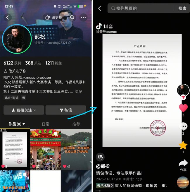 11月1日,乌兰图雅原乐队总监郝松也转发声明,力破谣言。
