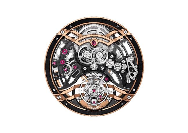 全新时计杰作承续这份匠艺积淀,尽可能减少机芯主夹板和桥板的材料,在不影响构造稳定性或时计性能的前提下,使光线能充分穿透机芯,尽显机械装置的内在构造美感。最终呈现的机芯宛若悬浮于空中,将其曼妙的内部运作展露无遗。