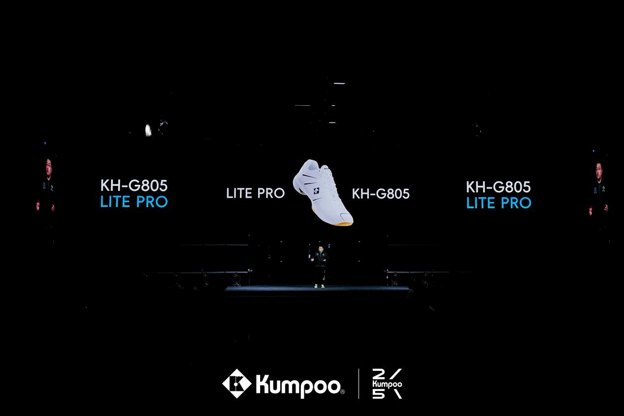 这不仅是新材料,更意味着球拍的结构可以更自由地优化。与其一同亮相的,还有对标国际大牌的KH-G805 LITE PRO专业羽鞋、首研人造球、全自主供应链的JS系列羽线,和专业的ACF地胶系统。
