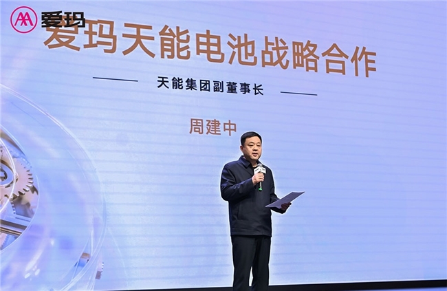天能集团副董事长周建中现场致辞,明确双方将以深度战略合作推进技术共创与产能协同,为爱玛金标电池提供坚实的技术与供应链支撑。